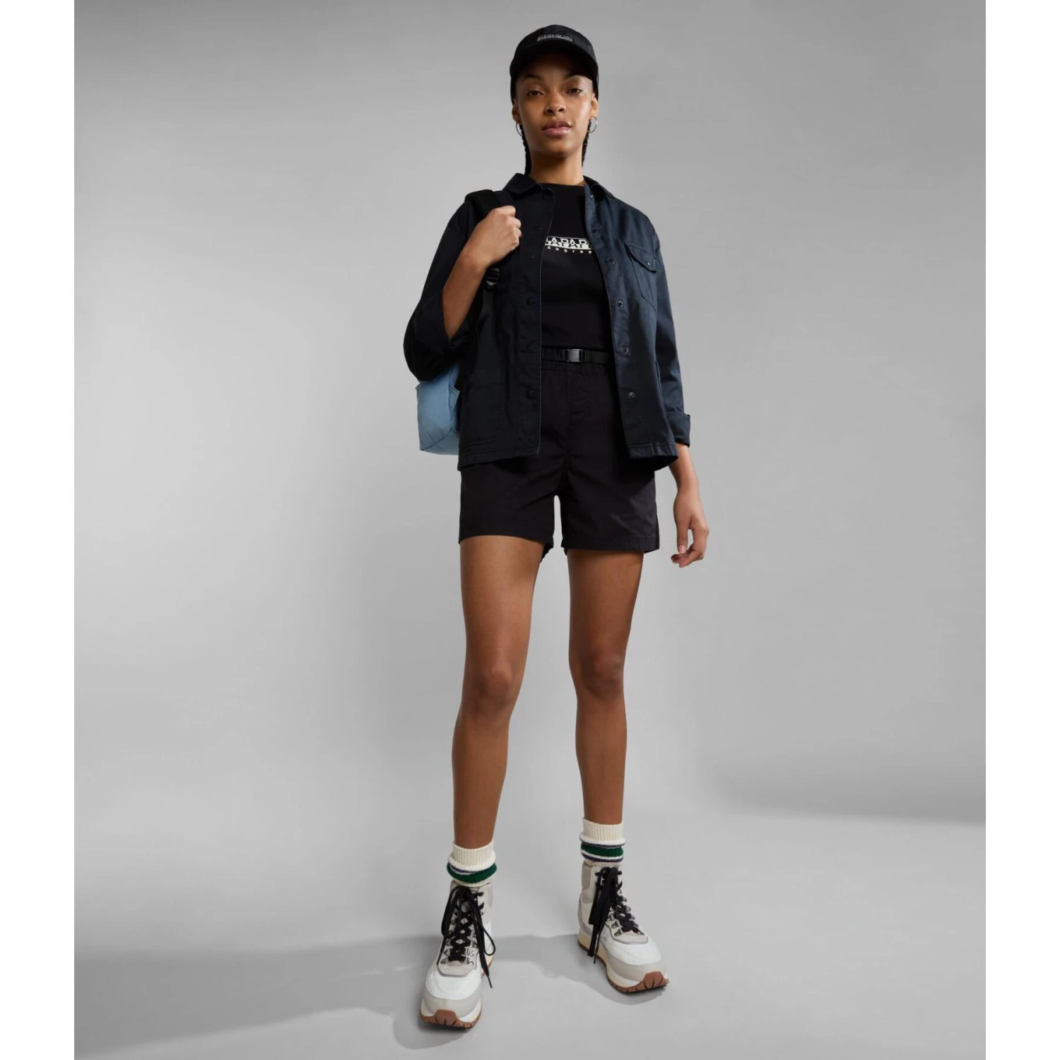 Progettata per essere stratificata nei cambi di stagione, la giacca cropped da donna Azuay è ideale quando fa troppo caldo per indossare una giacca e troppo freddo per indossare una camicia leggera. La chiusura a bottoni, il colletto a camicia e la composizione in cotone sono completati da diverse tasche con patta sul petto e dai dettagli firmati Napapijri.