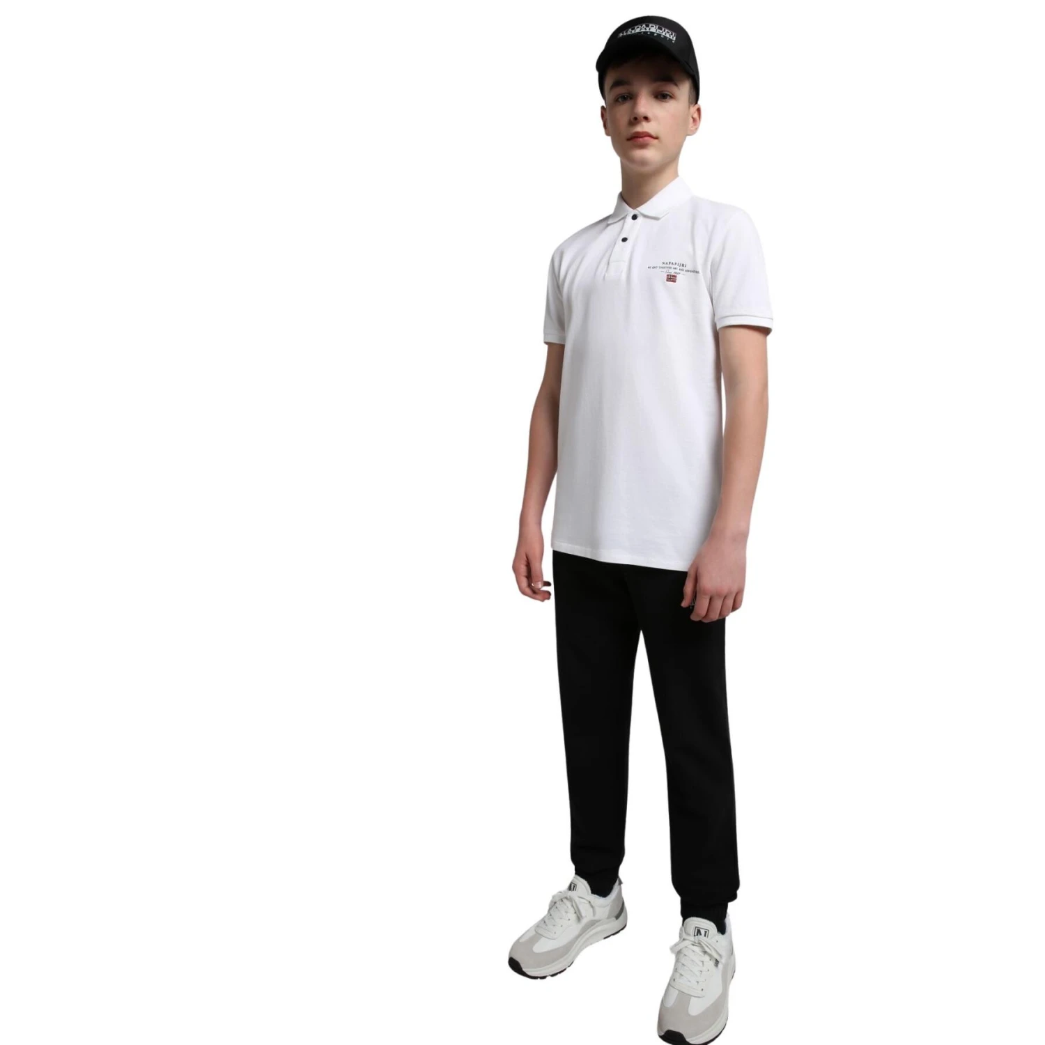 Un classico dell’estate, la polo Elbas è realizzata in un tradizionale tessuto di jersey piqué di cotone con chiusura a bottoni e l’iconico logo Napapijri Geographic stampato sul petto.